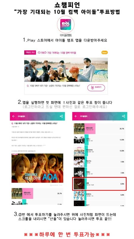 이거 얼릉하자ㅠㅠㅠㅠ산들이 순위 맴찢.. 하루에 한번씩 할수 있대!!!! 사진 공카에서 가져왔는데 문제시 말 예쁘게 내리라고 해져!