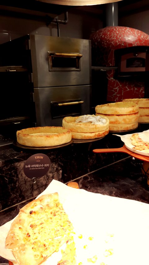 피자 두조각 먹고 샐러드랑 피자 가지러 가다가