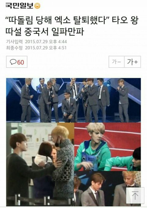 타오 왕따를 주동해서 탈퇴하게만든 주동자가 엑소 디오라고 중국언론에 보도되었다