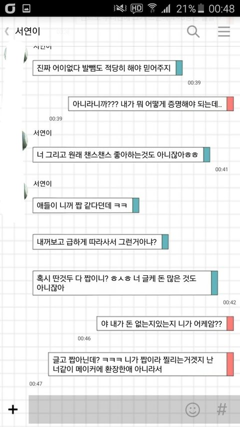 나보고 돈 많은것도 아니잖아이러는데 진짜 개빡쳣음 마지막 톡 보내니까 읽씹하더라