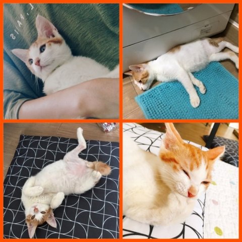 어린 아깽이 능곡이는 차에 치여 쓰러진채로 캣맘에게 발견되어 구조되었습니다.. 바로 발견되진 못했고 좀 늦게 발견이 되었지만 구조당시 능곡이의 상태는 정말 처참했어요 다리는 골절이 되었고 먹지 못해 삐쩍마른 몸으로 얼굴도 털도 몸도 모든게 엉망이였습니다 능곡이를 친 차도 바로 구조하지 않았던 상황들도 모든게 다 원망스러웠지만..... 그래도 살아있어줘서, 구조할수 있어서 감사하다고 마음을 다잡았습니다..몸상태가 좋지 않아 수술이 힘들면 어쩌나 여러가지 걱정이 앞섰지만 능곡이는 힘든 수술을 잘 마치고 현재는 임보처에서 재활하며 잘 지내고 있습니다 수술도 잘되어 앞으로 다리의 힘을 기르고 시간이 더 지나면 더 정상적으로 지낼수 있습니다 지금도 화장실 가는거 걷는거 모두 잘합니다 단지, 철심을 빼서 약해진 다리가 튼튼해지기만 하면 된다고해서 입양글 올려봅니다..