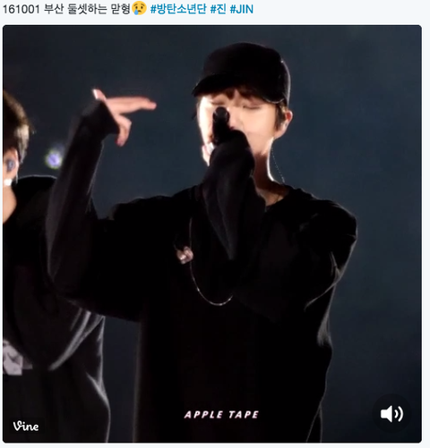 부산에서 석진이가 둘셋 방탄하는거..남준이가 없는거 실감 + 석진이가 그 빈자리 채워주는거 너무 고맙고 멋있어ㅠㅠ