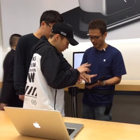 아이폰사러가서 엑소굿즈옷 입은 시우민
