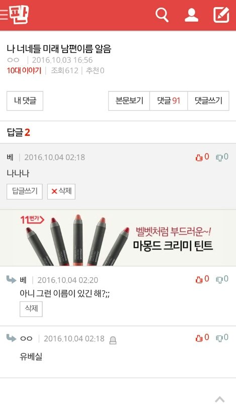 글쓴이의 미래 남편 이름도 알구요? ---------- http://pann.nate.com/talk/333953283