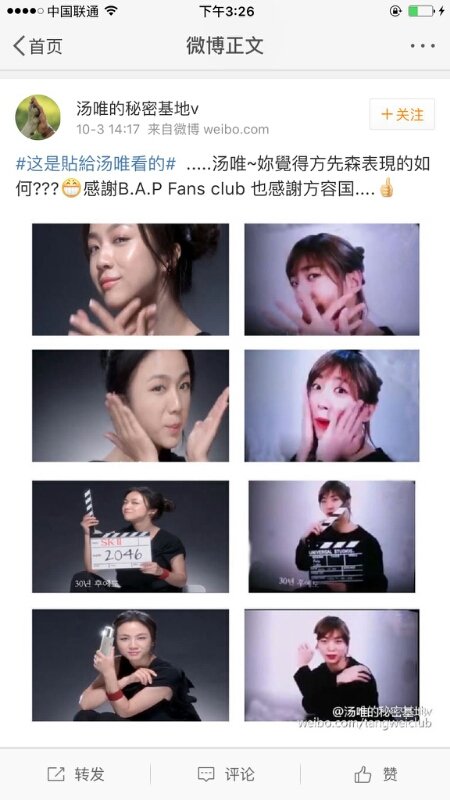 중국어라 뭔 소린지는 모르겠지만 중국 탕웨이 팬페이지? 같은데에 빵웨이 소개됨! 꽤 큰 팬페라는데 뿌듯