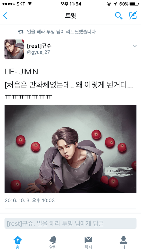 약간 김1민석분닮지않았어..? 정국이랑 꽃패 같이 했을때 둘이 닮았다고 생각했는데 이 그림보고 다시 느꼈당ㅋㅋㅋㅋㅋ 문제시빛펑