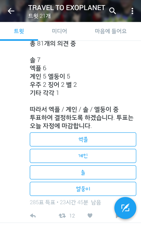 야헙홈 애칭투표한다