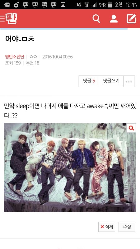 아까 이글 쓰닌데 짚을게 한두가지가 아닌듯.. 만약 아주만약 sleep이라고 쳐 근데 볼게 한두가지가 아닌게 기면증,그리고 안희주에서 엔딩에 애들 다 자잖아 근데 좀 무섭게 생각해서 에초에 awake에 맞게 석진이는 잠든게 아니고 연기였다면..?