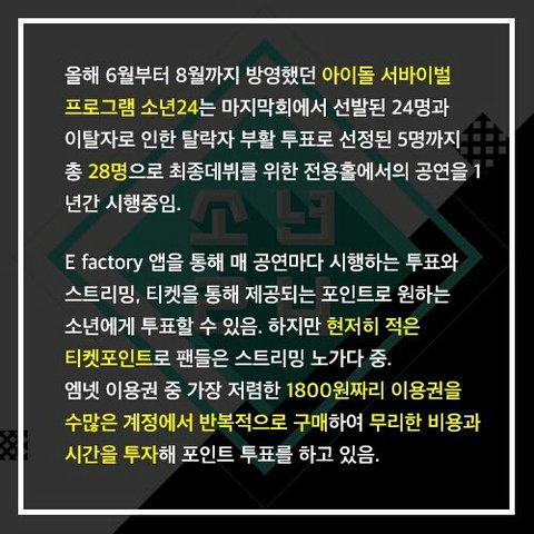 이는 데뷔를 위해 열심히 공연을 하는 소년들에게도, 소년들의 데뷔를 위해 돈을 주고 정당한 방법으로 투표한 팬들에게도 치명적인 일입니다.