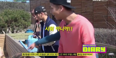 엔이 말에게 물을 주려고하자 머리에다가 물을 부음ㅋㅋㅋㅋ 라비는 샤워 아니라고 발 동동..