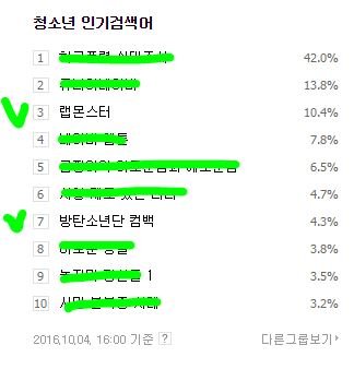 청소년 인기검색어 두개나!!