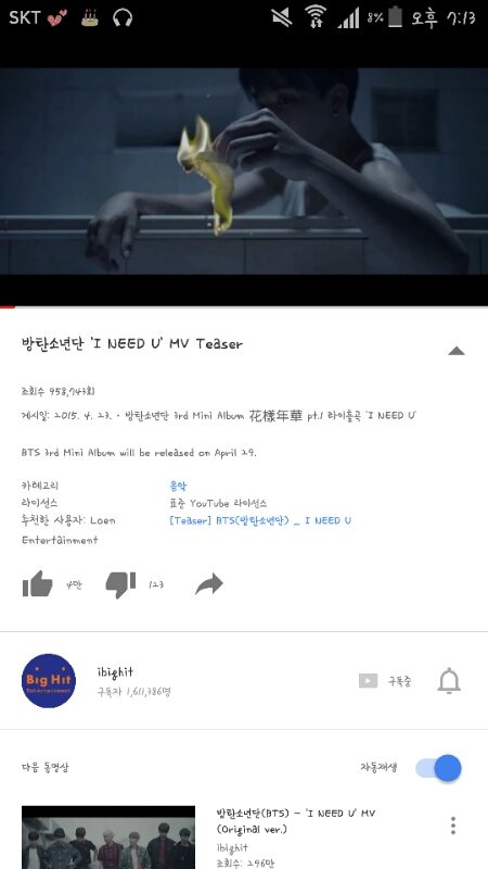 화양연화 파트 1 뮤비 티저가 나온 날임.