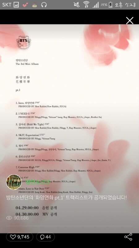 그리고 날짜는 안나와있다만 앨범이 나오기 2일 전인 27일! 트랙리스트가 떴음. 이렇게 보았을때 윙스 2일 전에는 트랙리스트가 뜰것으로 추정...