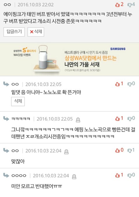 노노노 전까진 애들 인지도도 낮은편이었고 그나마 은지만 응칠땜에 좀 높았지 에이핑크란 그룹 자체를 모르는 사람이 많았는데 무슨 누구 버프로 떴다 이 지랄?