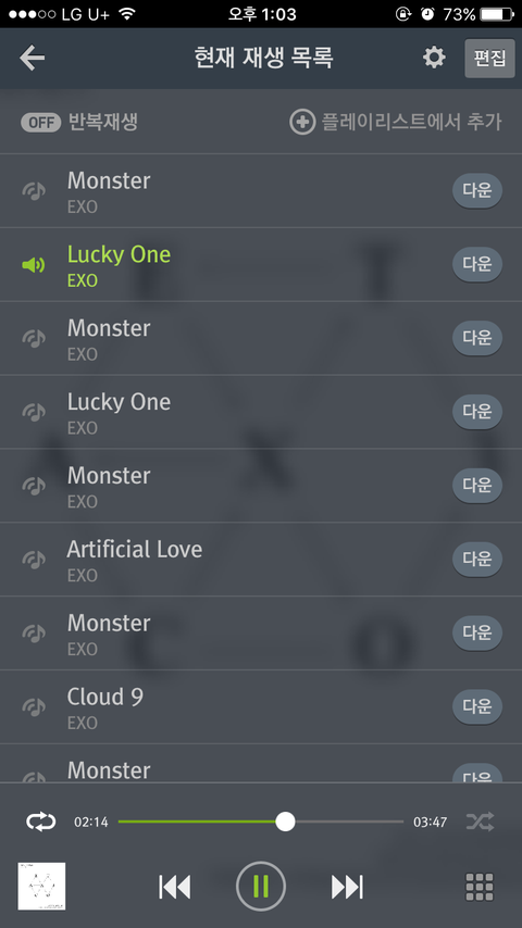 럭키원 차트아웃 스밍돌려
