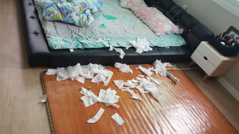 침대방에 있는 각티슈 한통을 저렇케...이누무시끼 맴매하자