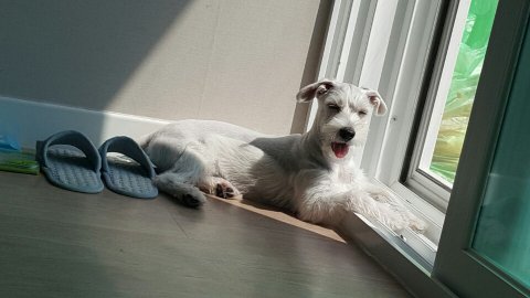 햇살이 좋아서 햇빛 쬐면서 웃고있는 테리 입니다^^