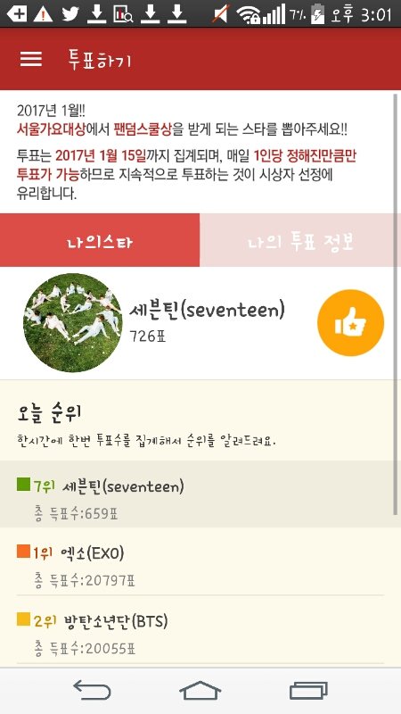 캐럿떨 투표하자 우리 저번에 3위였는데 확 밀려났어..투표하자 앱 들어가기만해도 투표5?6?번 할수있어.. 이거 상주는거인데 우리 애들 상 주자ㅠㅠㅠㅠㅠㅠ