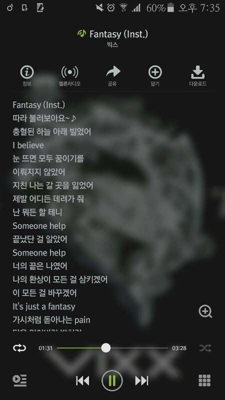 암튼 노래 들을 때 못들었던게 들리기도 하고 색다른 기분이라 많이 듣는데 그 중에서 최애는 판타지랑 락바야