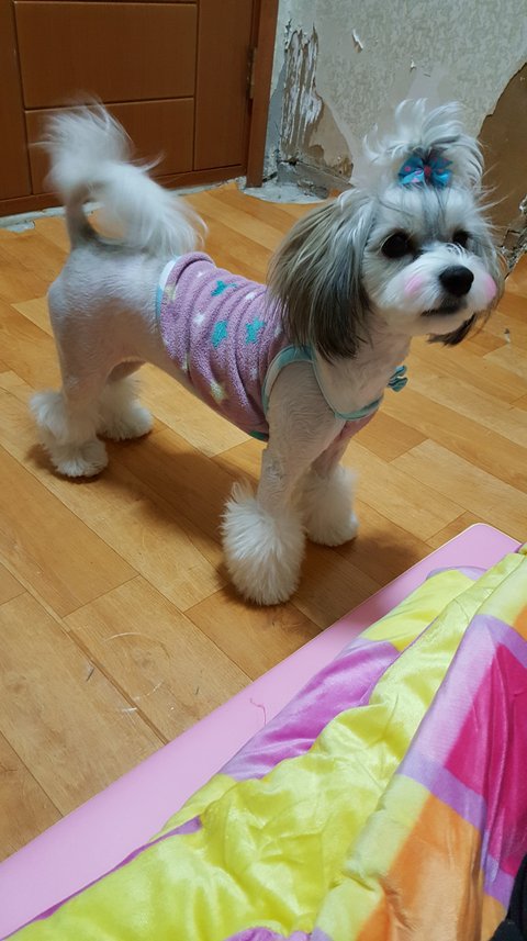 처음 4개월때 연두가 슈나+말티에 가깝더니 성장해갈수록 지켜보니 모색은 영락없이 시츄네요