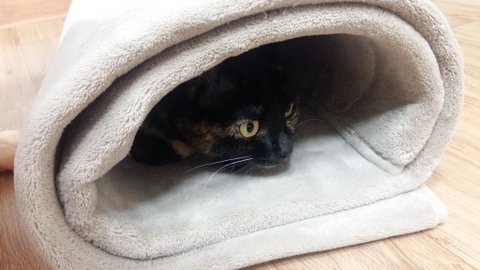 러그 꺼내놨더니 아니나다를까 고양이 터널이 되어버린ㅎㅎㅎ