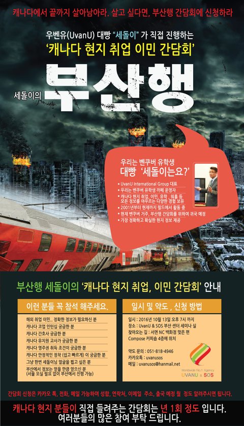이번 2016년 10월 13일(목) 오후 7시 우벤유&SOS 부산센터 세미나실에서 열릴 캐나다에