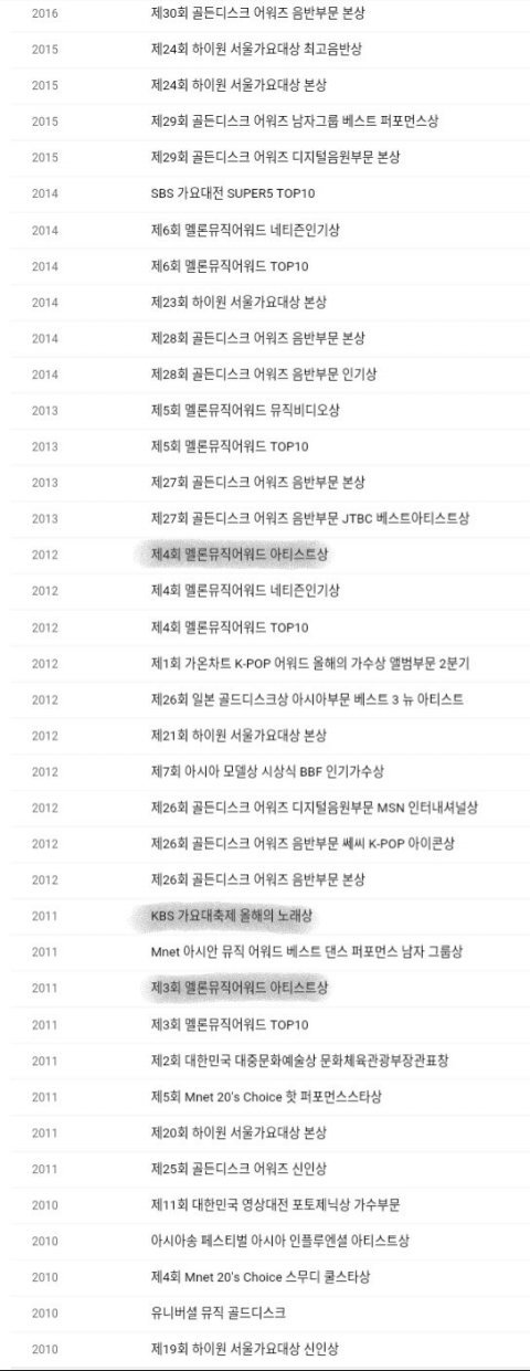 중소인데도 불구하고 어마어마한 상과 성적들이 대단한 가수임.