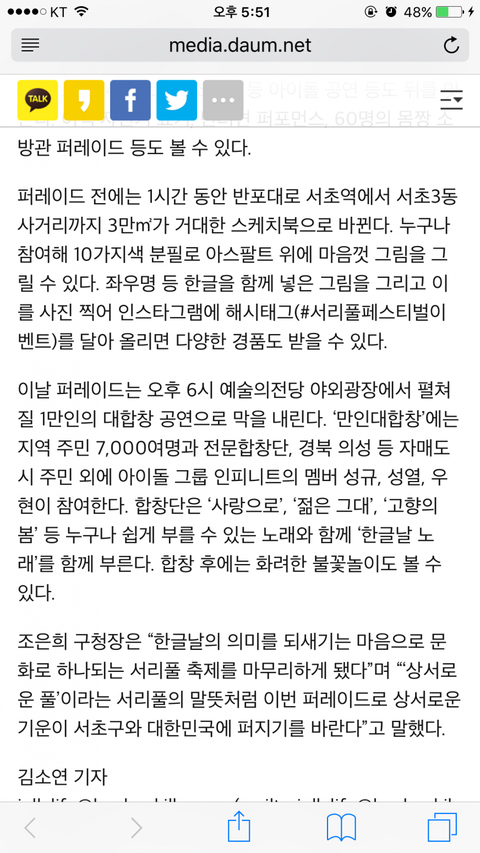 카카오스토리 보내기