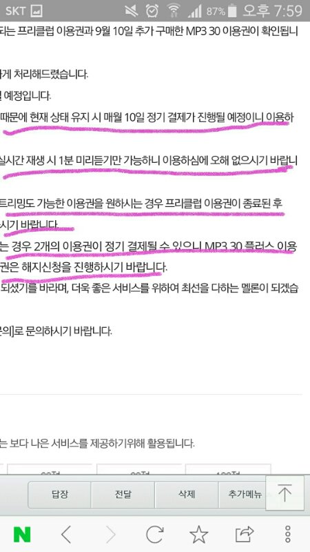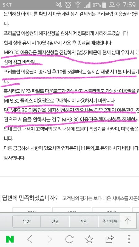 근데 그 전 프리클럽 이용권까지 두개 다 결제될수도 있다니까 mp3 30 이용권까지 해지를 하래