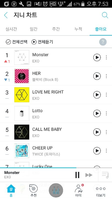 좋아요 중에서 엑소곡만 20개차트인임ㅋㅋㅋㅋ