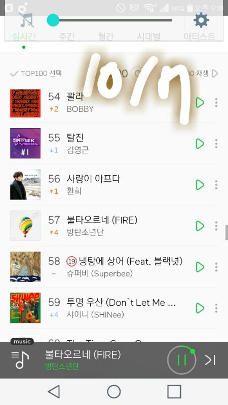 9시차트!! 올랐덩!!