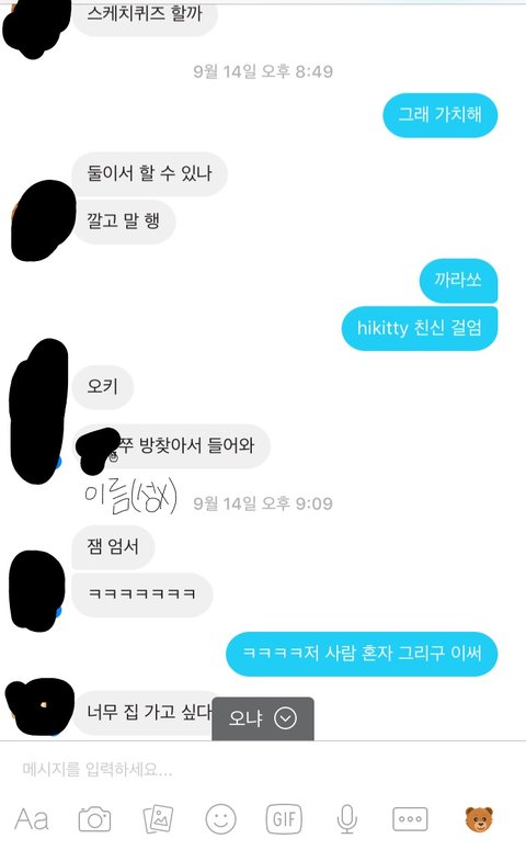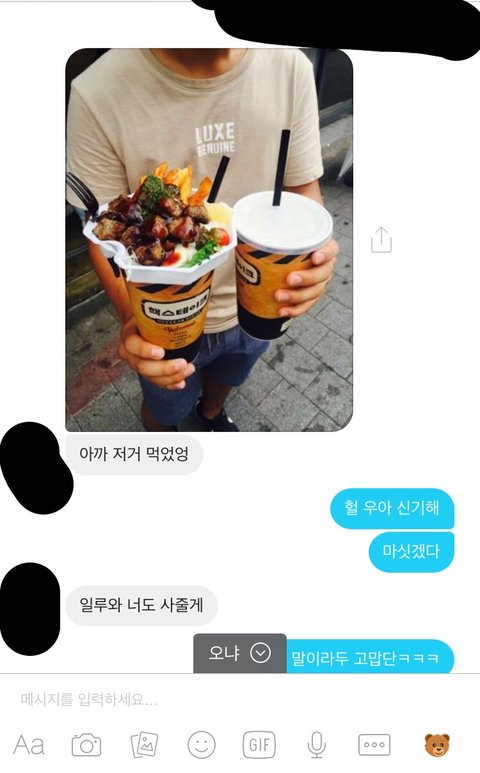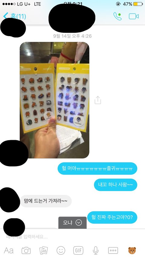 이게 오늘자 사진이야 수학여행 와서 자랑 했는데 답 하기 싫어보이지?