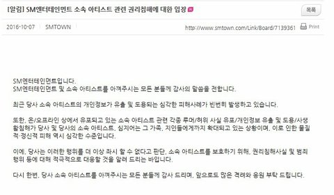 에셈이 고소한다고 공지 올렸어 경수에 관한 악의적인 말을 하는 애들도 잡혔으면 좋겠다 됴자기들도 열심히 경수 더 응원하자!♡