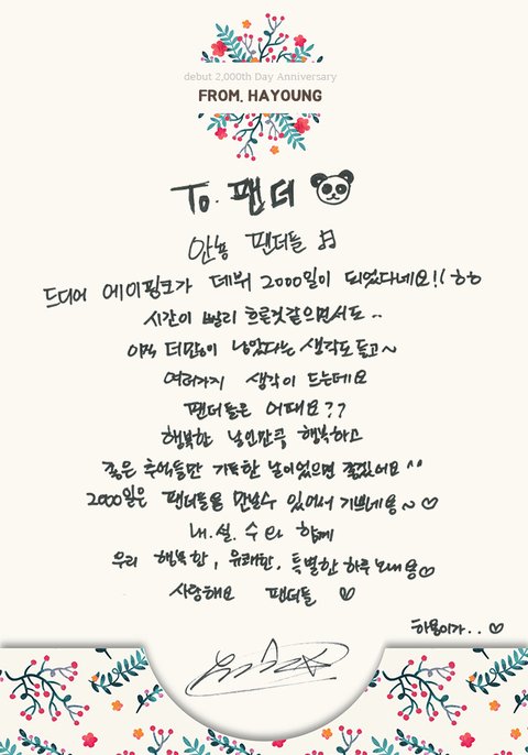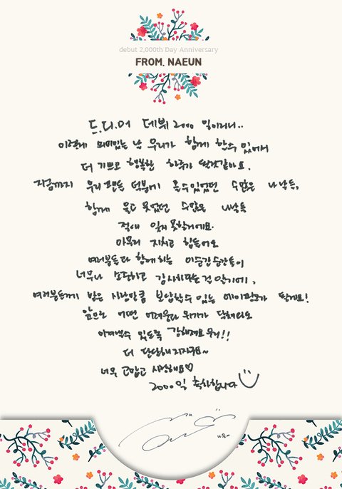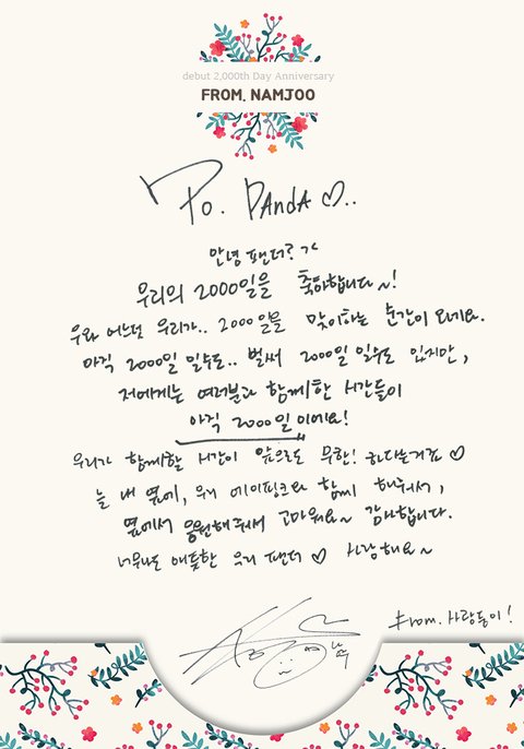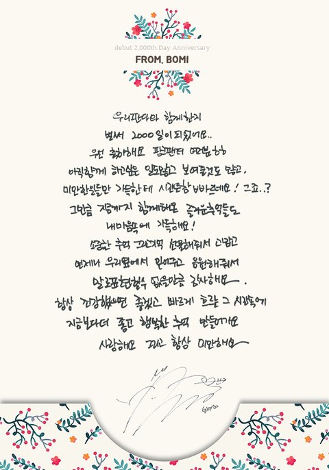 멤버별 2000일 손편지