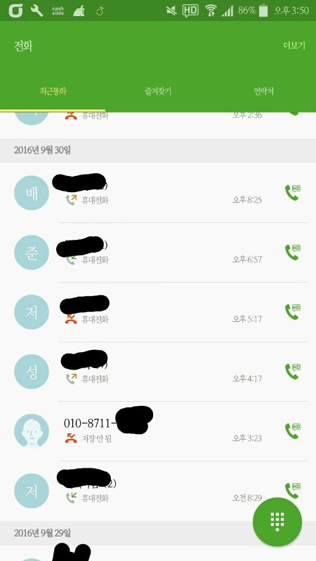 9월 30일날 알수없는 번호랑 44분간 통화했다고 나오는데 난 그런적이 없어.. 첫번째 사진은 9월 30일 통화목록이고 프로필에 한글자씩 나오는거 안가린 이유는 알수없는 번호랑 통화한적이 없다는거 알려주려고 안가렸어