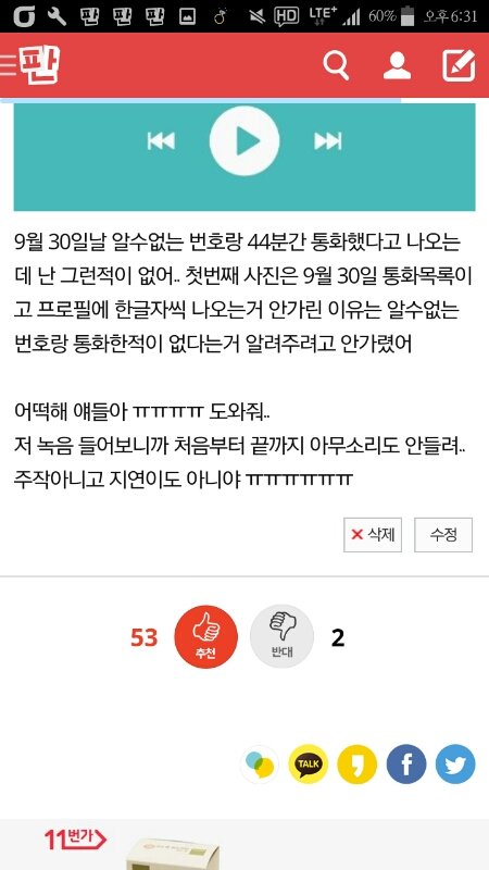 저 녹음 들어보니까 처음부터 끝까지 아무소리도 안들려..