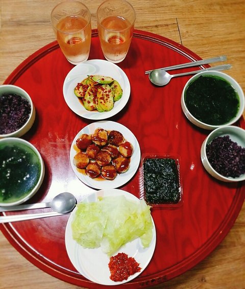 흑미밥&미역국&오이무침&돈가스&양배추찜&김