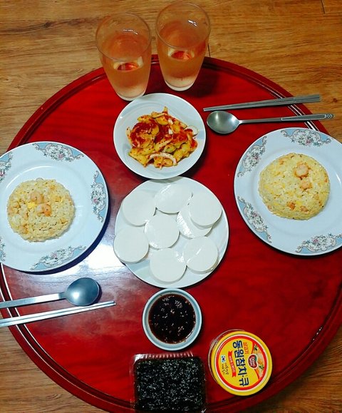 새우볶음밥&오이무침&순두부&김&통조림
