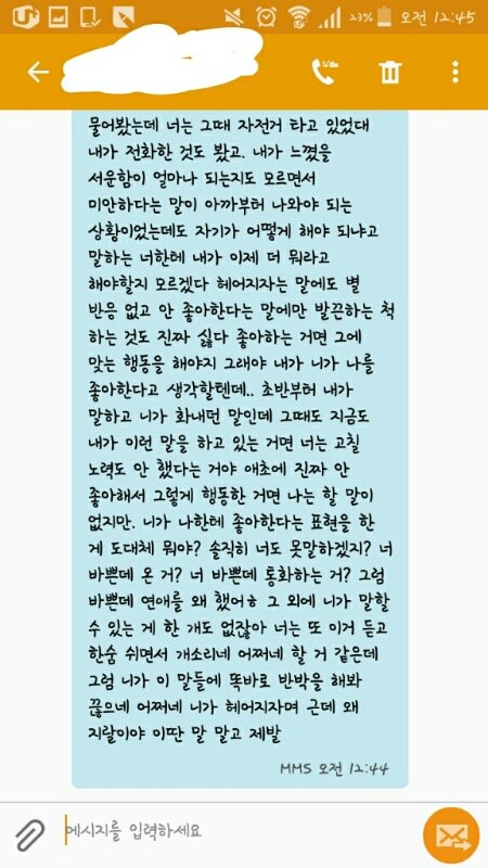 저기에 써있듯이 그럼 내가 뭘 어떻게 해야되냐고 하고 핸드폰 꺼논 것 같아요 전화 안 받아요 상황 설명은 제가 보낸 문자에 잘되어있는 것 같아 별 말 안 하겠습니다 조언 부탁드려요
