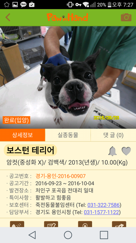 10.5일 오후 6시 45분에 친구에게 급하다고 연락이 왔습니다. 들어보니 한 카페에서 저희 강아지 찾는 글을 보신분이 댓글로 유기견 어플에서 봤다는 제보가 들어왔다는 겁니다. 급한 마음에 당장 그쪽으로 전화해보니 오후 6시가 지나 이미 보호센터는 연락이 되지 않았습니다. 다음 날 담당자가 친구에게 연락을 준다고 하여 기다렸습니다. (이미 친구에게 불신이 있었고 다급한 마음에 1초라도 빨리 전화를 해보려는 마음에 제 친언니에게도 다음날 오전 9시에 곧장 보호센터에 전화해달라고 부탁해놓았음)