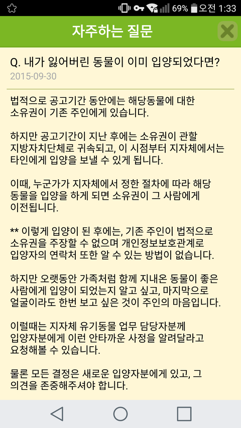 두시간 뒤에 친구에게 연락이 왔습니다. 담당자에게 연락이 왔는데 왜 아까 센터에 전화했던 분과 말이 다르냐고 했더랍니다. 그때 제가 친언니가 먼저 전화했었다고 말하고 보호센터 담당자분이 우리가 서로 말이 달라서 의심하니까 친구에게 너는 이제 담당자에게 연락하지 말라고 했습니다. (말이 다른 이유는 제 친언니는 있는 사실 그대로 말했고 제 친구는 본인이 견주 라고 말함)