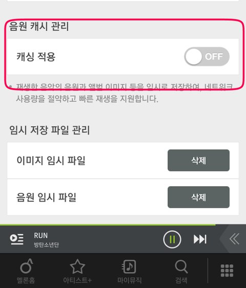 사과폰은 캐싱on/off 버튼이 없대 캐싱은 안드로이드만 해당!