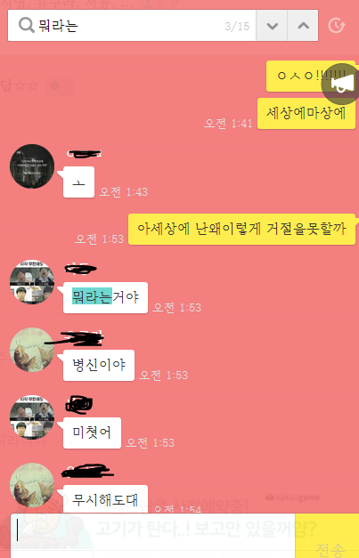 카톡에서 뭔 말만하면 ㅉ 병신 뭐라는거야; 이러거나
