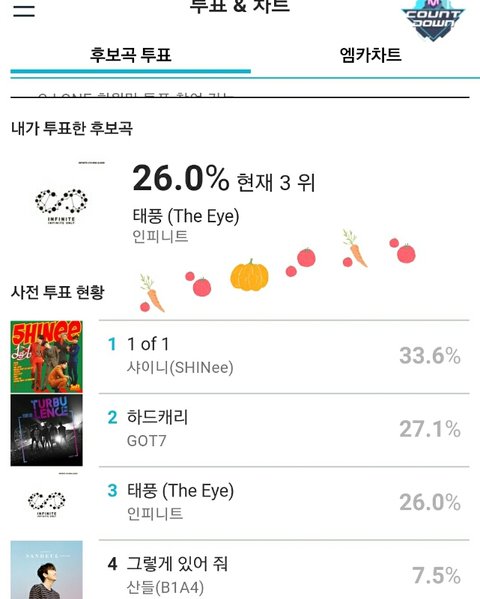 http://mcountdown.mnet.interest.me/vote/vote cj 뭐 가입하라해서 가입했는데 뭐 별거없더라 좀만 하면 올라갈 수 있을거같으니까 투표부탁해! 1시차트 유지하길!! 화이팅