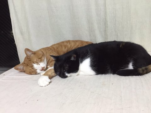 타마와 우리가 사이 좋게 자고 있어요
