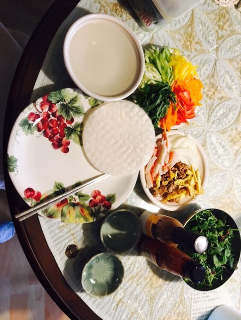 월남쌈입니다! 정말 요리라기보단 채썰기의 끝판왕인 음식이죠 정말 맛있게 먹었지만 다음엔 채칼을 꼭 써야겠다는 교훈을 얻었습니다..