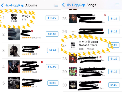 안녕 난 미국이삐야! 난 아이1튠즈를 이용하는데 여기시간으로 자정에 나올줄 안 윙스가 한국에서 뜬지 얼마 안되서 다 올라옴! 그래서 차트를 먼저 확인했는데! 이번 윙스앨범은 케이팝 장르로 안들어가고 힙합/랩 장르로 나옴..! (여태까지 방탄앨범 다 케이팝으로 분류됬었음)