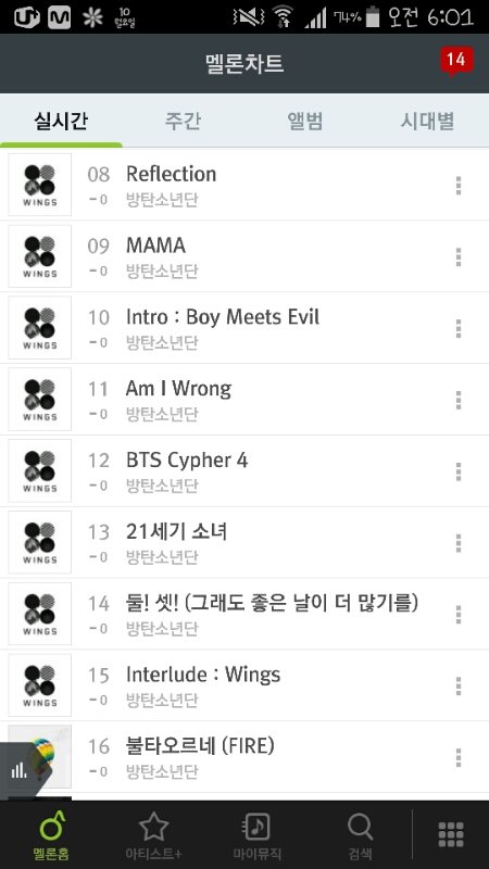 대박이다...진짜 대박....순위변동없이 1-16위까지 전부 방탄..아미들 진짜대단해