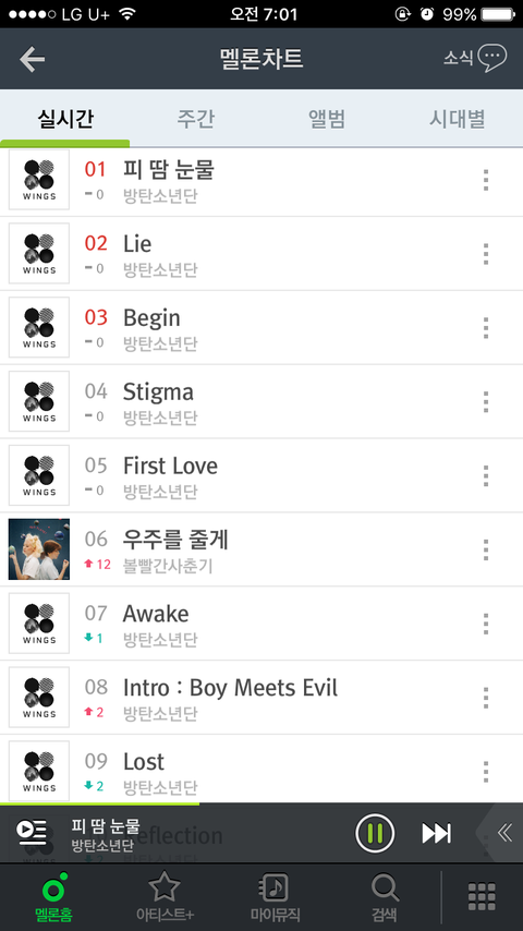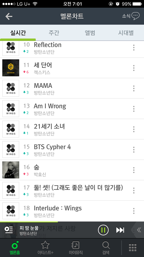 7시 멜롱차트야 ㅠㅠ 분발하자!
