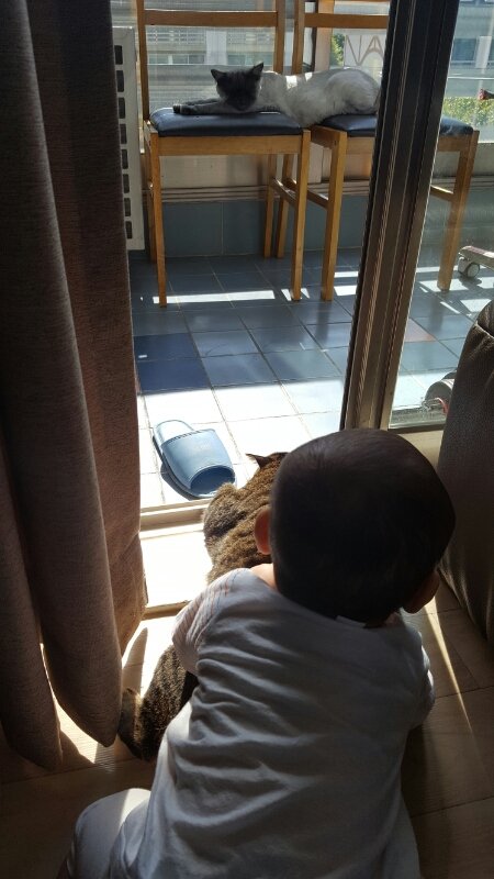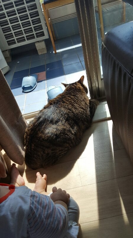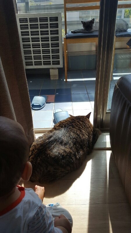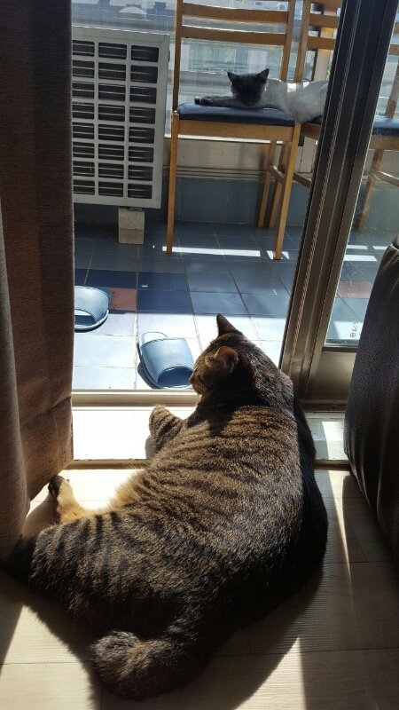 햇빛이 따스히 드는곳에서 일광욕을 합니다.